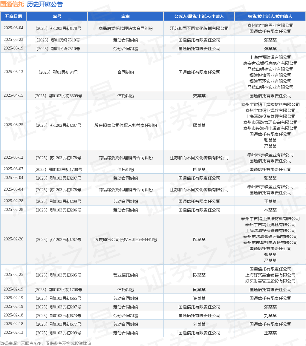 本站消息,根据天眼查APP显示,近日公布了一则国通信托有限责任公司作为原告/上诉人的开庭公告,详细内容如下: